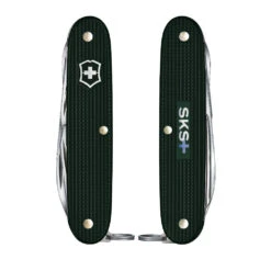 The back panel of the Pioneer Green Alox is engraved with the Swiss Knife Shop “SKS” logo, as the Alox Pioneer in this color was created just for us here at Swiss Knife Shop.